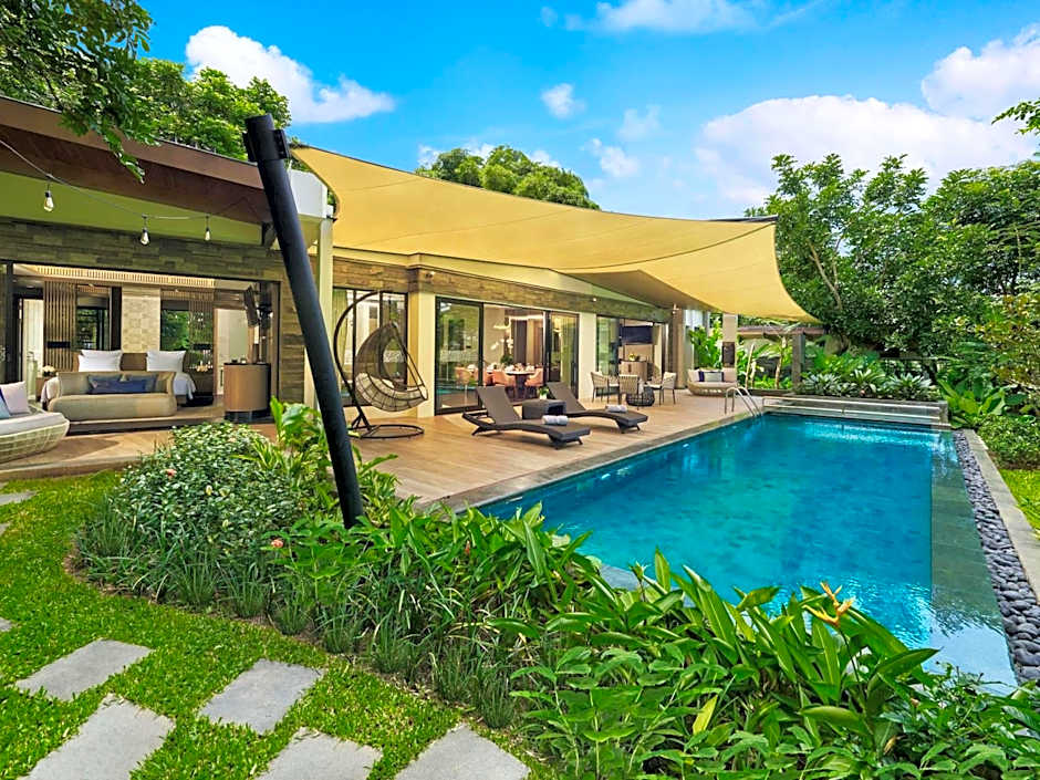 This villa features a pool with a view. This spacious villa consists of 1 living room, 3 separate bedrooms and 3 bathrooms with a bath and free toiletries. The villa's kitchenette, which features a refrigerator and a microwave, is available for cooking and storing food. The air-conditioned villa provides a flat-screen TV with cable channels, soundproof walls, a mini-bar, a tea and coffee maker as well as garden views. The unit offers 4 beds.